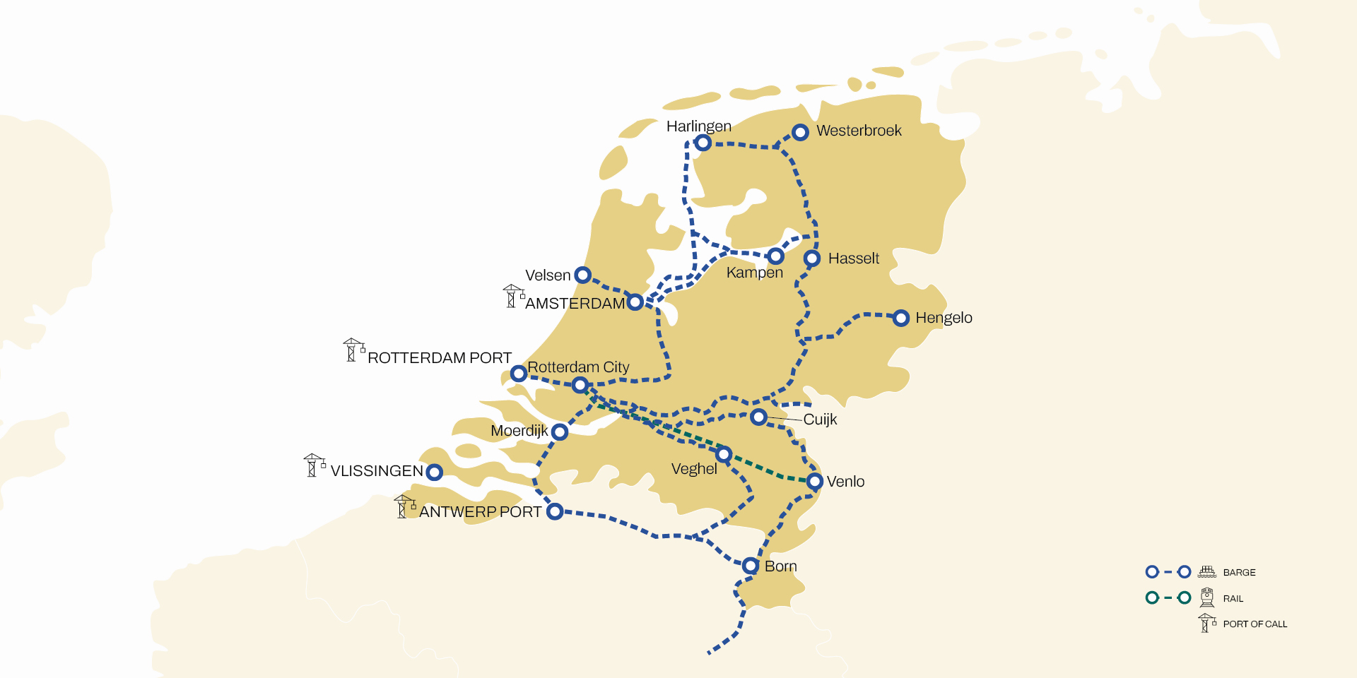 Move your cargo more efficiently, save unnecessary road miles and reduce your carbon footprint by using our extensive and market-leading range of Dutch ports and integrated national intermodal services.