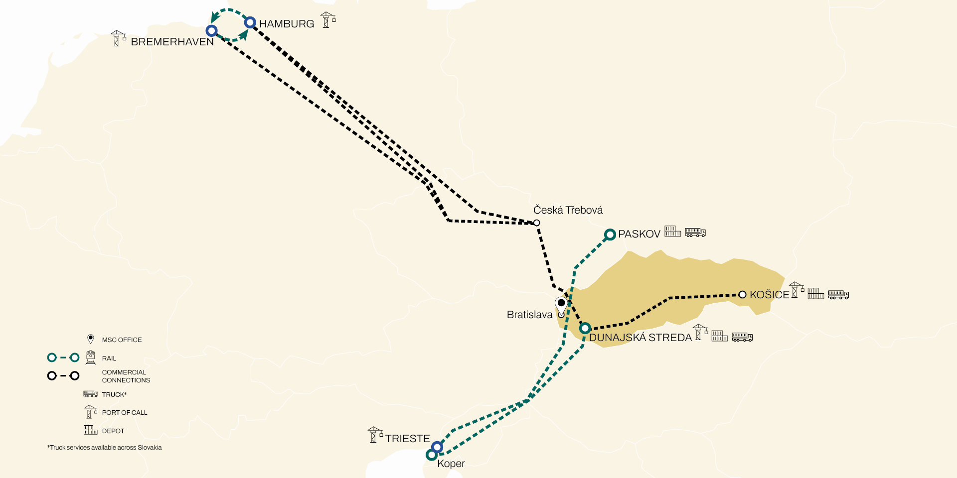 Thanks to frequent rail connections via North Europe and the Adriatic ports, we offer the shortest routes for your European cargo.