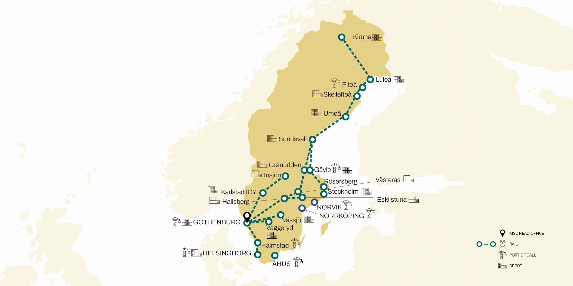 Our wide port coverage in Sweden and integrated intermodal services from/to your premises enables us to move your cargo more efficiently – saving you unnecessary road miles and reducing your carbon footprint.